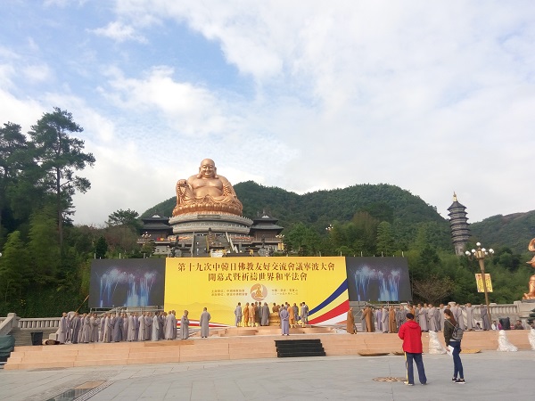 为迎接第十九次中韩日佛教友好交流会议宁波大会的顺利召开,国际学院韩语与日语专业的志愿者们响应活动号召,投入到此次大会的志愿服务当中。此次活动于2016年10月12日在宁波市奉化区享有“中国佛教五大名山”之称的雪窦山上举行了开幕式。