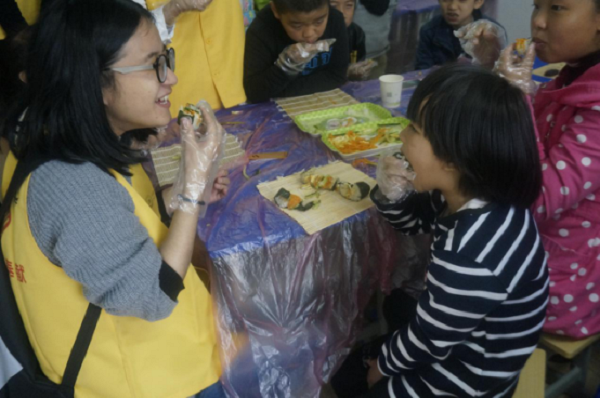在此次活动中,志愿者们向社区的小朋友介绍了中国古代神话故事。通过神话的视角,讲述了盘古创世,人类起源及各类英雄的神话故事,使小朋友了解到在古人眼中的世界的由来。而后,他们又开展了制作爱心寿司的活动。由通过小朋友自己动手,志愿者在旁辅助的方式,圆满地完成了此次活动。在制作寿司的过程中,孩子们全力配合,兴致盎然的做着寿司。活动结束后,孩子们都把做好的寿司带回家给父母,让父母也尝尝自己的劳动成果。这不仅丰富了孩子们的学校生活,锻炼了动手能力,自己品尝了美味,还孝顺了父母。