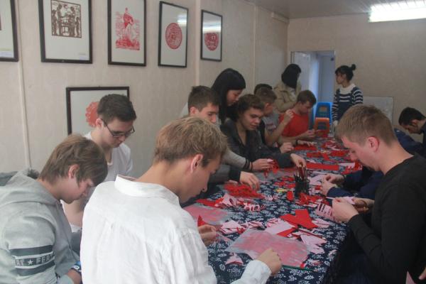 德国交流生在学习剪纸