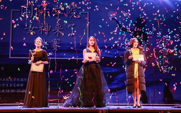 一开场,国际学院舞队动感活力的热舞引爆全场,掌声阵阵。在此前比赛中脱颖而出的十二位女神开始了第一轮比赛——创意T台秀。在个人走秀中,选手们和她的男神穿着提前设计好的衣服进行T台走秀,个个花容月貌,人比花娇。其中7号选手陈莎以花仙子装扮惊艳全场。第一轮后,由主持人滕靖娴和俞加乐进行抽奖,全场观众积极互动,效果良好。第二轮情景模拟秀更是精彩纷呈。选手演绎了日常生活中礼仪:迎宾礼仪、舞会礼仪、面试礼仪。第二组朱灵丹和金淑慧带来的面试礼仪别具特色。其中朱灵丹选手更是在女神和女神经之间自由切换,掀现场气氛高潮。在第三轮的才艺表演中,12号选手顾赐裔带来的钢琴曲《眼泪》在众多节目中显得独具一格,把人带入轻灵悦动的乐曲中。通过评委们公正的评分和工作人员仔细的计算,最终,3号女神朱灵丹众望所归,以优异表现获得第一名。8号金泓荣获亚军,12号顾赐裔荣获季军,比赛在参赛选手和评委的合影留念圆满落下帷幕。