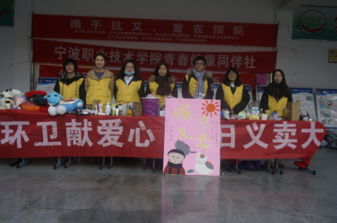为在冬日里给环卫工人送去一份温暖,2016年12月14日中午11点30分,国际学院志愿者服务大队成员在学校食堂一楼展开了以“爱在校园,情系环卫工人”为主题的暖冬义卖。