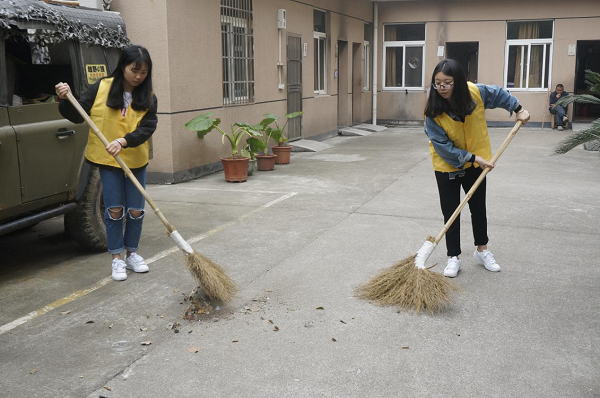 上午九点左右,在王姐的安排下,敬老、助老活动正式展开。同学们分为若干小组,各有分工。有的在庭院里打扫地面,有的帮助保洁阿姨一起打扫楼道,有的则对老人们进行了采访,细心地询问老人的生活情况。不少老人反应,工作人员照顾得十分体贴,让他们在这儿的生活就像是在家里一样。通过与他们的交流志愿者了解到,他们中有退休的工人、有无儿无女者、还有一个百岁老人。他们平时的休闲活动就是看看电视、听听广播、读读报纸,相互聊聊天,年迈的他们也许有着各自不同的遭遇、人生,但是他们却从未放弃对生活的信心。