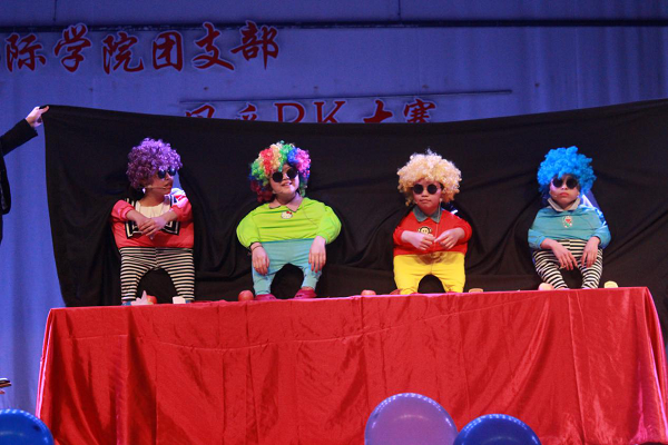2017年4月13日星期四晚,国际学院第七届团支部风采PK大赛在李惠利大剧院隆重举行。担任此次大赛的评委和嘉宾分别是:国际学院对外交流办公室王伟老师,国际学院辅导员团委老师朱娟老师,国际学院辅导员吴艳艳老师,国际学院辅导员王茹佳老师,国际学院辅导员罗家文老师,国际学院团委副书记徐佳慧同学。16级各团支部参加了此次比赛。