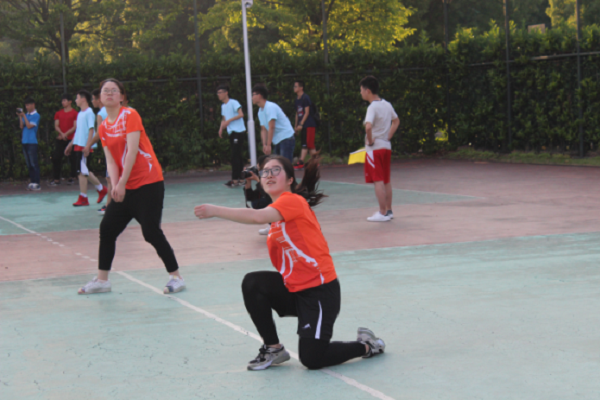 哨声一响,双方迅速进入到了激烈的角逐中,势均力敌,难分上下,双方队员各施绝技,一个个精彩的扣球,拦网,让现场的观众都欢呼不已。比赛中队员们有被球砸到,也有失误,但这并没有影响到她们的团结协作,在中场休息时,队员们围在一起积极调整策略与分析上半场比赛时的不足,下半场比赛一开始,我院球员发挥良好使对手频频失误。在她们的扣杀,妙传中,赢得了在场观众的阵阵掌声。队员们相互配合,相互鼓励,奉献了一场精彩绝伦的比赛。同时场下的拉拉队也喊破嗓子为自己院的队员们加油。但遗憾的是,最后我院惜败给了建工学院。