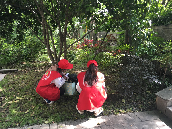 5月13日早上8点,国际学院志愿者服务大队成员和国际学院志愿者们在里仁社区工作人员的带领下,在里仁花园进行了捡垃圾活动。