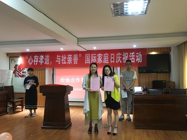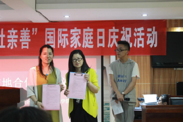 为迎接第24个国际家庭日,大力弘扬中华民族“百善孝为先”的传统美德,教育广大团员青年孝敬父母、珍视亲情,同时加强高校与地方联系和交流,实现资源共享、互惠互利,5月12日下午,国际学院与玉兰社区开展了校地共建签约仪式暨“心存孝道,与社亲善”国际家庭日活动。