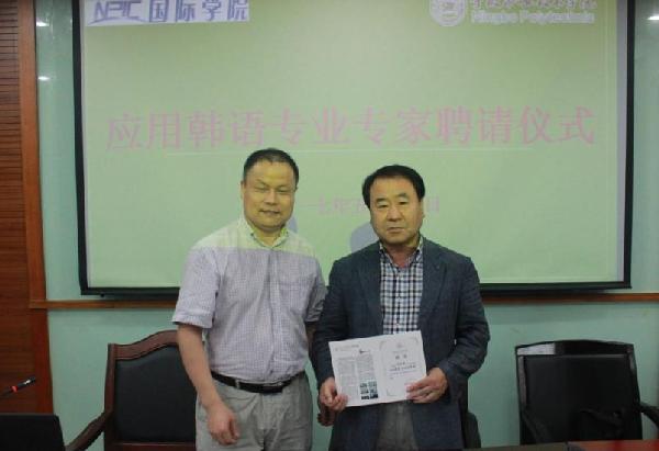 国际学院聘请浙江外国语学院金海救教授担任应用韩语专业兼职专业带头人,聘请延边大学李敏德教授担任应用韩语专业客座教授,定期来我院做教学、学术及文化类讲座,指导应用韩语专业教师的教学和科研工作,参与修订人才培养方案,多方面指导应用韩语专业师生发展。