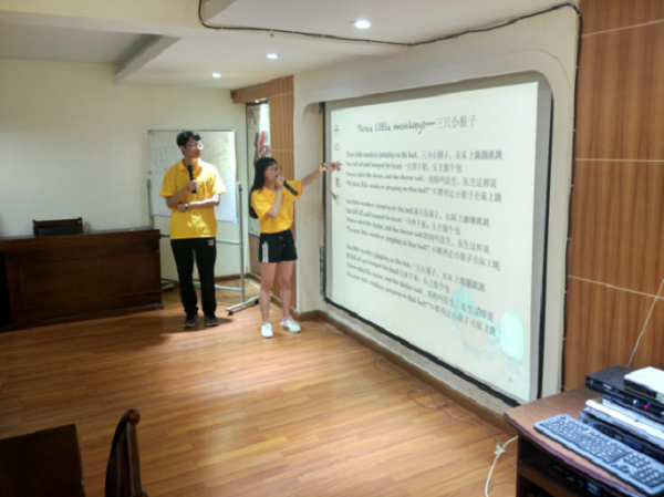 2017年7月19日上午9时35分,国际学院“里仁为美”暑期社会实践团队又一次开始了他们的实践活动,地点还是在玉兰社区的公共服务中心。而今天的活动主题是——日常英语。