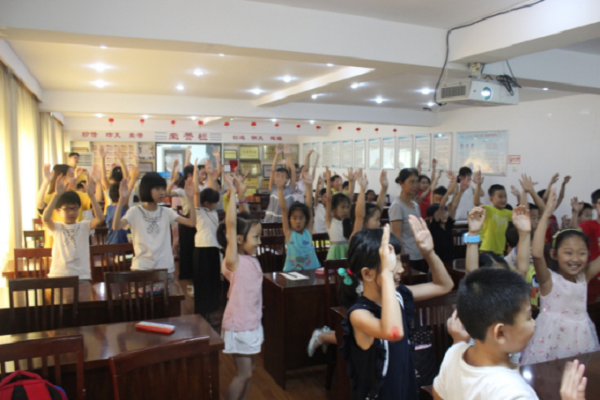 今天和上周最后一天一样,也是要给社区小朋友们带去两节课程。分别是由团队成员共同准备的五水共治讲座和由应用徳语3160的李瑛琇和徐健给小朋友们带去的德语课。第一节五水共治讲座中,各队员从哪五水和如何治这两方面,给小朋友进行科普和指导,教他们如何在日常生活中啊才能加五水共治,保护身边珍贵的水资源,小朋友们也对这样的科普类课程有着一定的好感,在原本就有的基础上加深了对五水共治的印象。第二节德语课的风格和五水共治不同,充满了轻松愉快的气氛,寓教于乐。再简单复习了上节课的德语内容之后,还进行了反应小游戏,听到不同的单词要举起相应的手,来让小朋友对已经了解的德语单词加深记忆。
