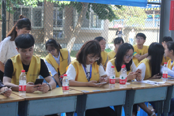 新生从教学楼到去宿舍的整个过程都会有学长学姐进行陪同,使他们能够顺利报道。志愿者们热情周到的服务,温馨甜蜜的笑容更是让同学们真切感受到来自学校的温暖,来自老师们和学长们的关怀。负责帮助新生搬运行李的志愿者们不断的往返在宿舍和报到处之间,烈日当头,他们没有丝毫抱怨,争先恐后的帮助每一位新生。在自己的工作之余,为新生答疑解惑,传授自己的经验。校园内处处热情流动,荡漾着学子们的笑容。不知不觉,一天的迎新工作即将结束,志愿者们的迎新工作也画上了尾声。