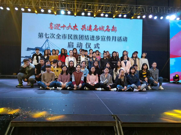 宣传月活动以“喜迎十九大,共建名城名都”为主题,鼓舞各族群众共同开创更加美好的未来;深入宣传社会主义核心价值观,筑牢中华民族共同体的思想基础,不断增强各族群众对伟大祖国、中华民族、中华文化、中国特色社会主义道路的思想认同,唱响各民族共同团结进步、共同繁荣发展的主旋律。在这宣传月活动的启动仪式中,志愿者们坐在观众席中,感受着不同民族的不同风情,如节目开头时的舞狮,活灵活现;如维吾尔族的舞蹈,舞姿婀娜。