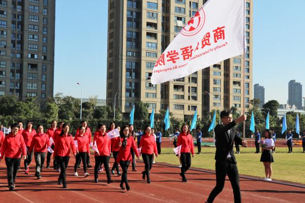 图为:商贸外语学院方阵入场