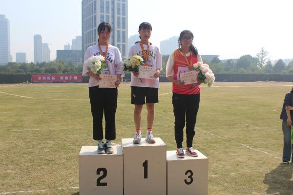 图为:应安娜获得3000米冠军颁奖