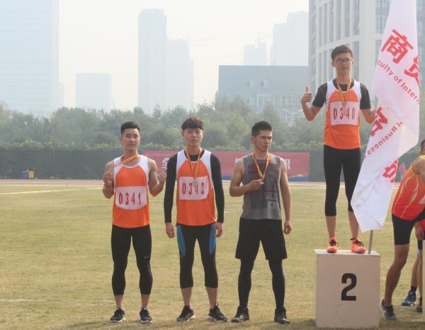 男子接力赛的四名男生们在赛道上奋勇向前,相互配合,努力超越,完美地代表了我们商外学子优秀的运动风貌,表现了对体育运动的热爱与执着。他们在赛道上相互配合的默契让我们感受到了团队协作的力量,他们冲向终点站的那一刻让我们为之自豪。赛场上的辉煌定是平日里点滴汗水累积成的,他们做到了!