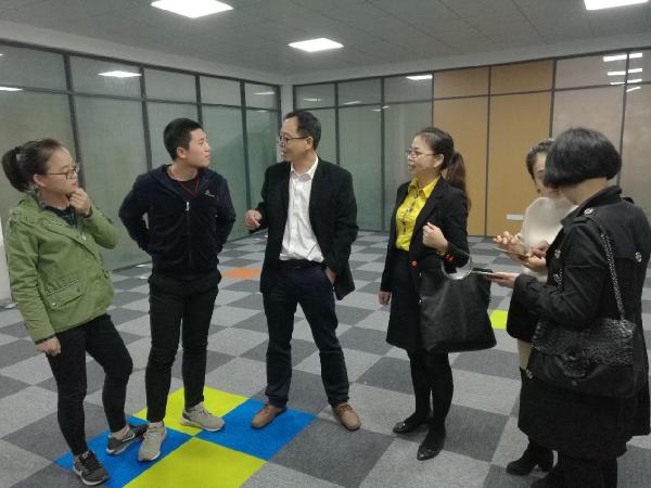 参观过程中我们还偶遇了国际贸易专业12级毕业生项赵凯和姜云,目前两人在该园区创业,在阿里巴巴国际站上创立了一家名为Young lighting的灯具店。董院长与他们进行了亲切、深入的交谈,了解他们的经营状况和对在校所学课程的一些反馈。项赵凯同学反馈目前公司处于起步阶段,做跨境电商过程中英语听说能力尤其重要,如果能掌握其它小语种如西语、德语、日语、韩语等会更有助于开拓更多的市场,外贸函电、国际贸易实务课程有助于奠定理论基础。田经理补充说,目前园区开设了自己的学院---恺英电商学院,对新员工进行为期三个月的专业技术培训,大幅度提高员工的操作水平。来访广东工贸职业技术学院领导和老师们还就园区与院校合作的机制和模式进行了深入交流。