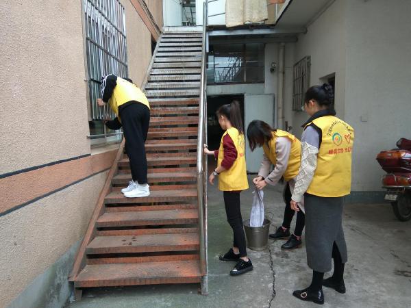 到达大碶托老院后,在大碶托老院负责人的要求下,进行了分工,一组负责擦楼梯和走廊的扶手,一组负责扫地,一组负责拖地,一组负责擦玻璃。分完工以后,志愿者们有条不紊的开始了他们的工作,不多时,原本积尘的玻璃变得发亮,扶手也恢复了光泽,地面也变得干净整洁。干完活后的志愿者们虽略带疲惫,但倍感欣喜。