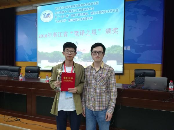 由浙江省社科联、浙江省翻译协会和中国翻译协会语言服务行业创业创新中心(LSCAT)浙江分中心联合发起、宁波大学外国语学院承办的第三届“LSCAT杯”浙江省笔译大赛(英语)于2018年4月21日落下帷幕。共有来自浙江大学、宁波大学、浙江财经大学等二十余所本科院校和来自浙江经济职业技术学院、金华职业技术学院、浙江商业职业技术学院等十三所高职院校的学生参加了此次笔译大赛,比赛总人数超过2000名。决赛分汉英翻译和英汉翻译双向题型,比赛持续了两个小时。最终,我校商贸外语学院商务英语专业3172班王永明同学在倪洪源老师的指导下,在决赛中取得汉译英专科组一等奖的佳绩,荣获了浙江省“笔译之星”荣誉称号。同时,王永明同学还入选了中国翻译协会LSCAT人才库。