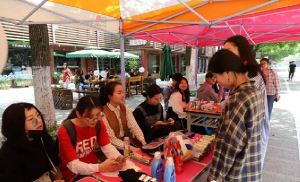 为了帮助各班更好的销售商贸外语学院团委学生会于4月23日—4月27日在创业街(思源超市前)、食堂集中设置摆摊。每天中午11点半,参加营销的同学都准时到达,迅速布置好摊位,尽情地吆喝着,现场氛围霎时变得特别活跃,摊位售卖应接不暇,得到了不少路过的老师、外国友人、学生的积极响应。当然活动现场也少不了歌手的助兴,社团的参与。