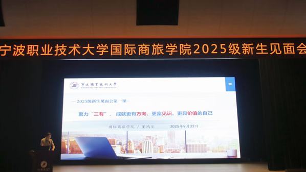 9月22日下午,国际商旅学院在李惠利大剧院举行了2025级新生见面会,喜迎530名新生。会议由学院党总支副书记卢杭央主持,学院院长、党总支副书记董鸿安,副院长吴安萍,副院长华忆迪,各专业主任以及25级新生班主任、辅导员、班助、军训教官以及两位特邀嘉宾出席。