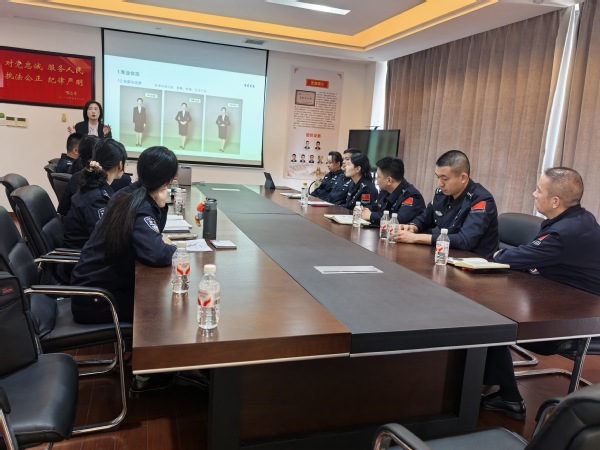 此次培训旨在提升现场会讲解人员的综合素养与服务水准,确保即将召开的现场会能够高标准、高质量地展现浙江边检队伍的良好形象与港口口岸安全防控的工作成果。王波与吴安萍老师结合口岸边检工作的实际场景与政务接待的规范要求,围绕形象塑造、仪态举止、语言表达、讲解技巧及突发情况应对等多个维度,为参训讲解员进行了深入浅出的理论讲解与细致规范的实操指导。